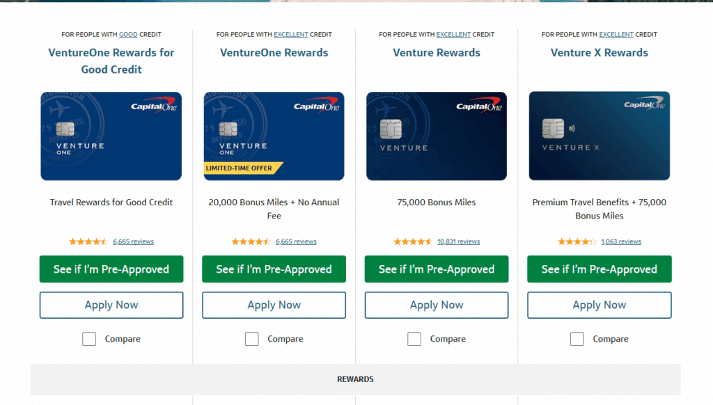 • Credit Cards for Average Credit: Capital One offers cards such as the VentureOne Rewards for Good Credit, which has more flexible credit requirements.